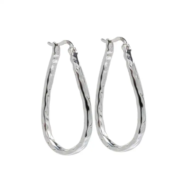 Confecționați din argint 925 placat cu rodiu, acești cercei se remarcă prin designul lor geometric, cu o formă ovală în stil picătură, care adaugă un plus de modernitate și sofisticare oricărei ținute. Dimensiunile lor de 35 x 25 mm și greutatea de 6,7 g îi fac ideali pentru a atrage privirile fără a compromite confortul.
