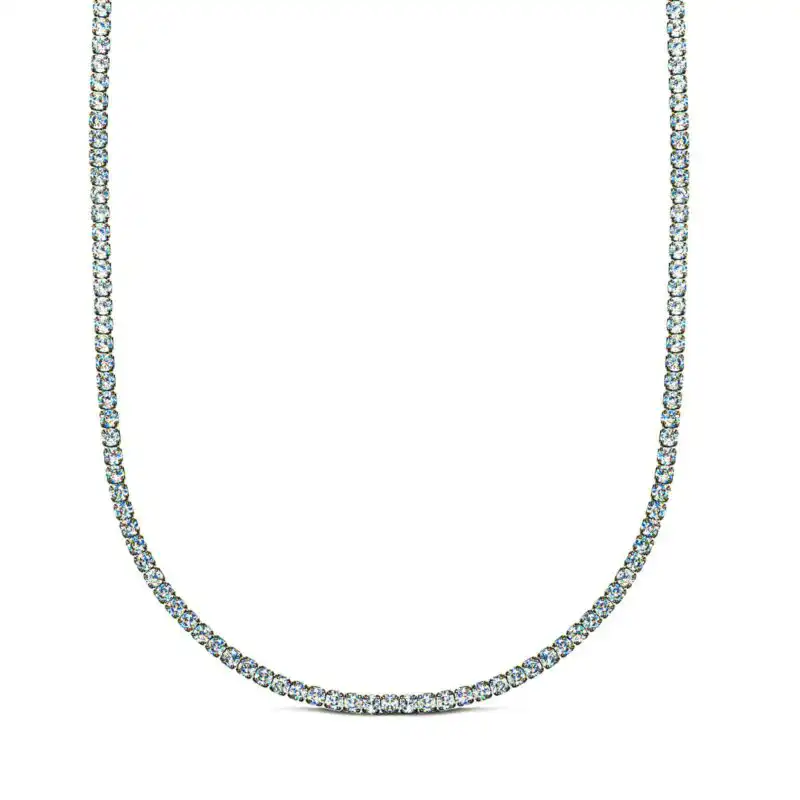 Definit printr-un design rafinat, colierul tennis 2mm este alegerea perfectă pentru femeia modernă care apreciază eleganța subtilă. Realizat din argint 925, placat cu rodiu pentru un finisaj de înaltă calitate, ce menține strălucirea intensă și oferă protecție împotriva oxidării.