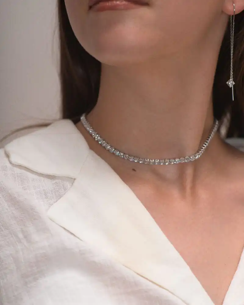 Îngrijire: Pentru a păstra frumusețea colierului Tennis pe termen lung, evitați contactul cu parfumuri, produse cosmetice sau alte substanțe chimice care ar putea afecta strălucirea sa. Recomandăm depozitarea într-o cutie de bijuterii sau într-un săculeț din material moale, pentru a preveni zgârieturile.