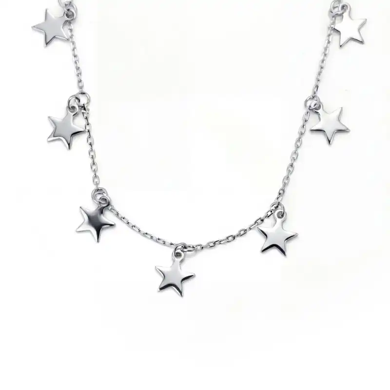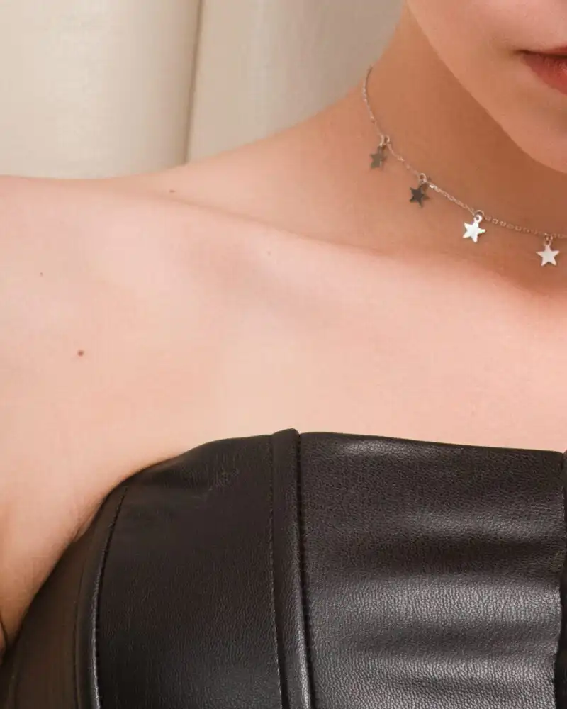 Adaugă luminozitate și veselie stilului tău cu acest Colier din Argint la Baza Gâtului cu Stele.