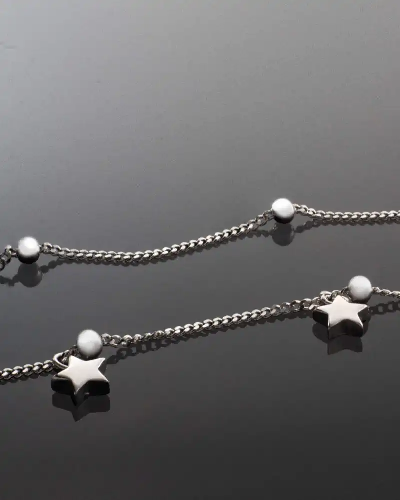 Brățară dublă din argint 925, cu detalii în formă de sfere și stele, o armonie între stil și originalitate. Designul său distinctiv, învăluit într-o aură cosmică, reprezintă o declarație a rafinamentului. Această bijuterie dublă imbină simplitatea cu grația, împletindu-le într-un mod inovator și captivant. Fiecare element al brățării este meticulos lucrat, reflectând frumusețea subtilă a cosmosului într-un mod uimitor. Placarea cu rodiu protejează argintul împotriva coroziunii, uzurii și zgârieturilor, menținându-i aspectul strălucitor pentru o perioadă îndelungată. Poartă această brățară pentru a aduce mister și eleganță fiecărei apariții. Dubla sa strălucire îți va sublinia individualitatea și stilul personal, oferindu-ți originalitate. Este bijuteria perfectă pentru a aduce strălucire fiecărei zile.