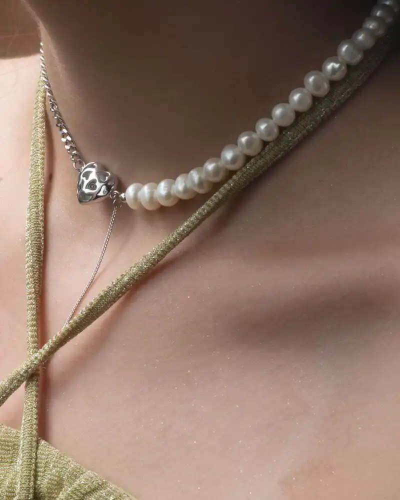 Colierul din argint Feminity este o bijuterie deosebit de rafinată, realizată din argint 925 placat cu rodiu, pentru a oferi protecție superioară împotriva zgârieturilor și o strălucire de lungă durată. Designul său se distinge prin îmbinarea armonioasă dintre argintul 925 și finețea perlelor naturale de cultură. Acest contrast adaugă distincție și rafinament celor care îl poartă.