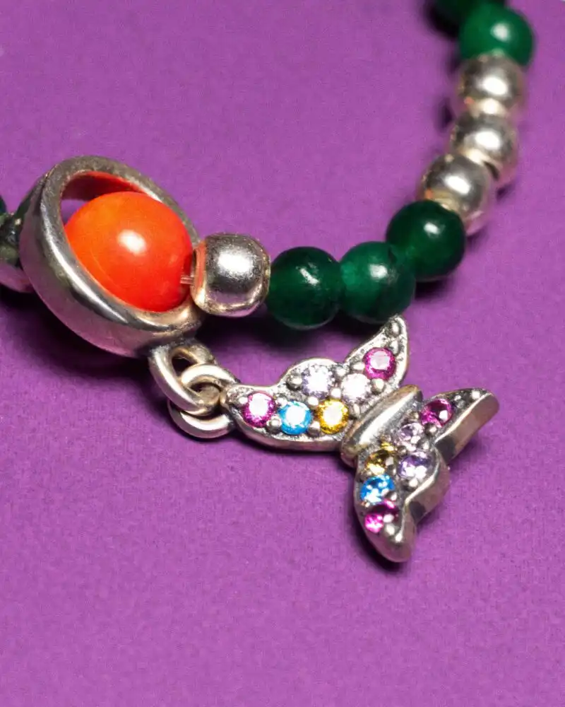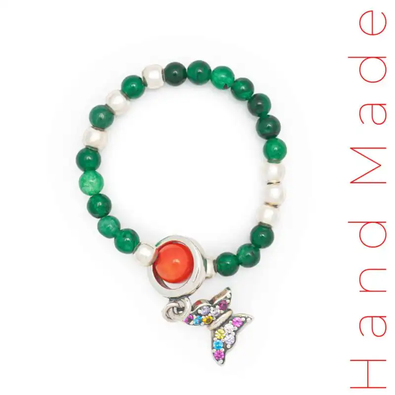 Inelul Fly este o bijuterie delicată, plină de eleganță, realizată din argint 925 placat cu rodiu, îmbogațită cu agat verde și coral. Aceste elemente se împletesc armonios, aducând un echilibru subtil între frumusețe și semnificații, fiecare piatră având rolul său în revitalizarea energiei și aducerea unei stări de bine.
