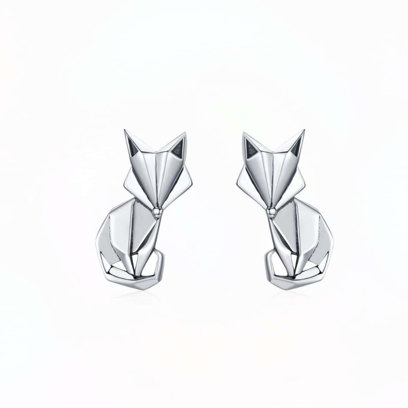 Cercei din argint cu design de vulpe – formă stilizată, look inteligent cu aer enigmatic.