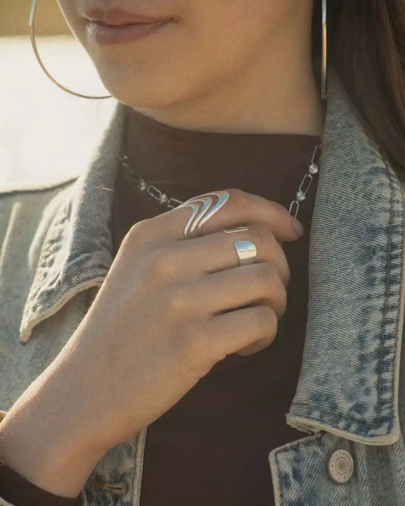 Inelul din argint Wide Open este o bijuterie versatilă , care îmbină stilul modern si confortul de zi cu zi. Designul său minimalist, caracterizat prin linii curate și forme deschise, îl face un accesoriu perfect pentru orice ocazie. Poate fi purtat cu ușurință în combinație cu alte bijuterii sau poate fi un punct de atracție singular, adăugând un aer sofisticat ținutelor tale. Ideal pentru persoanele care apreciază bijuteriile de impact, și care își doresc o piesă care să se integreze ușor în tinutele lor de zi cu zi, fără a face compromisuri la capitolul estetică sau confort.