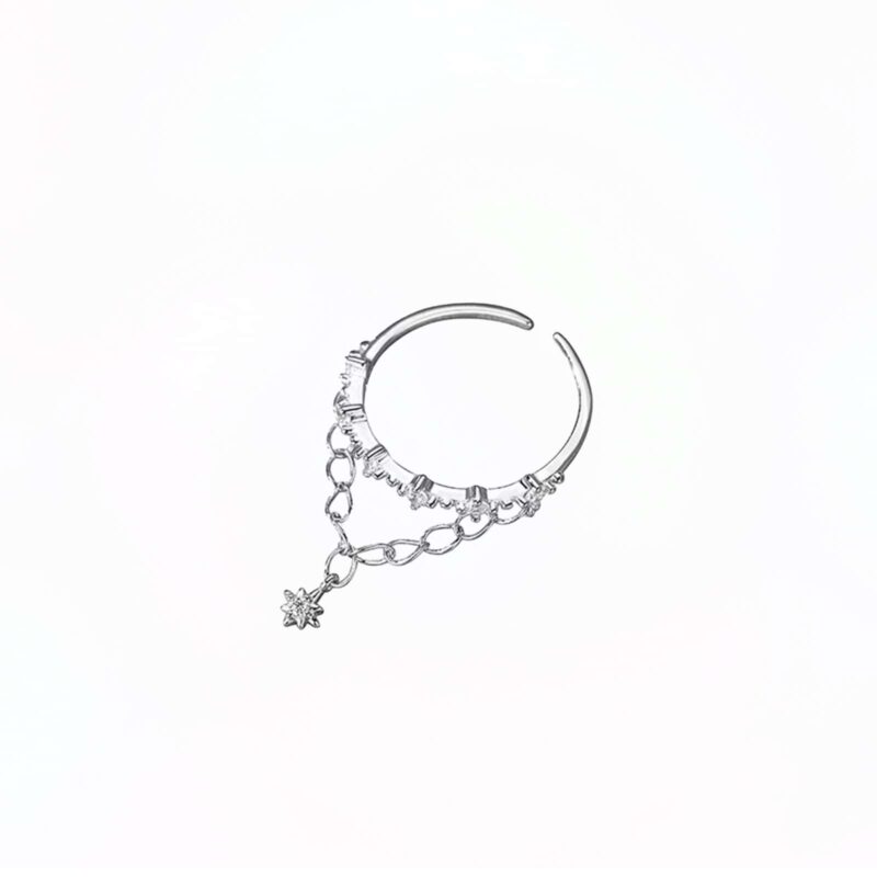 Inel din argint reglabil, placat cu rodiu și încununat de o fermecătoare steluță. Placarea cu rodiu oferă inelului un luciu strălucitor și o rezistență crescută la uzură, protejându-l și menținându-i strălucirea timp îndelungat. Designul său reglabil asigură o potrivire perfectă, indiferent de mărimea degetului, garantând astfel confort și flexibilitate. Steluța ce împodobește inelul este o sursă de inspirație, simbol al speranței și al visurilor, subliniind esența feminină și puritatea. Fiecare detaliu al acestui inel este realizat cu atenție la finisaje și calitate, oferindu-ți o bijuterie deosebită, care va încânta ochii și va înnobila mâna. Indiferent dacă îl porți într-o zi obișnuită sau la ocazii speciale, acest inel va adăuga distincție fiecărei apariții.