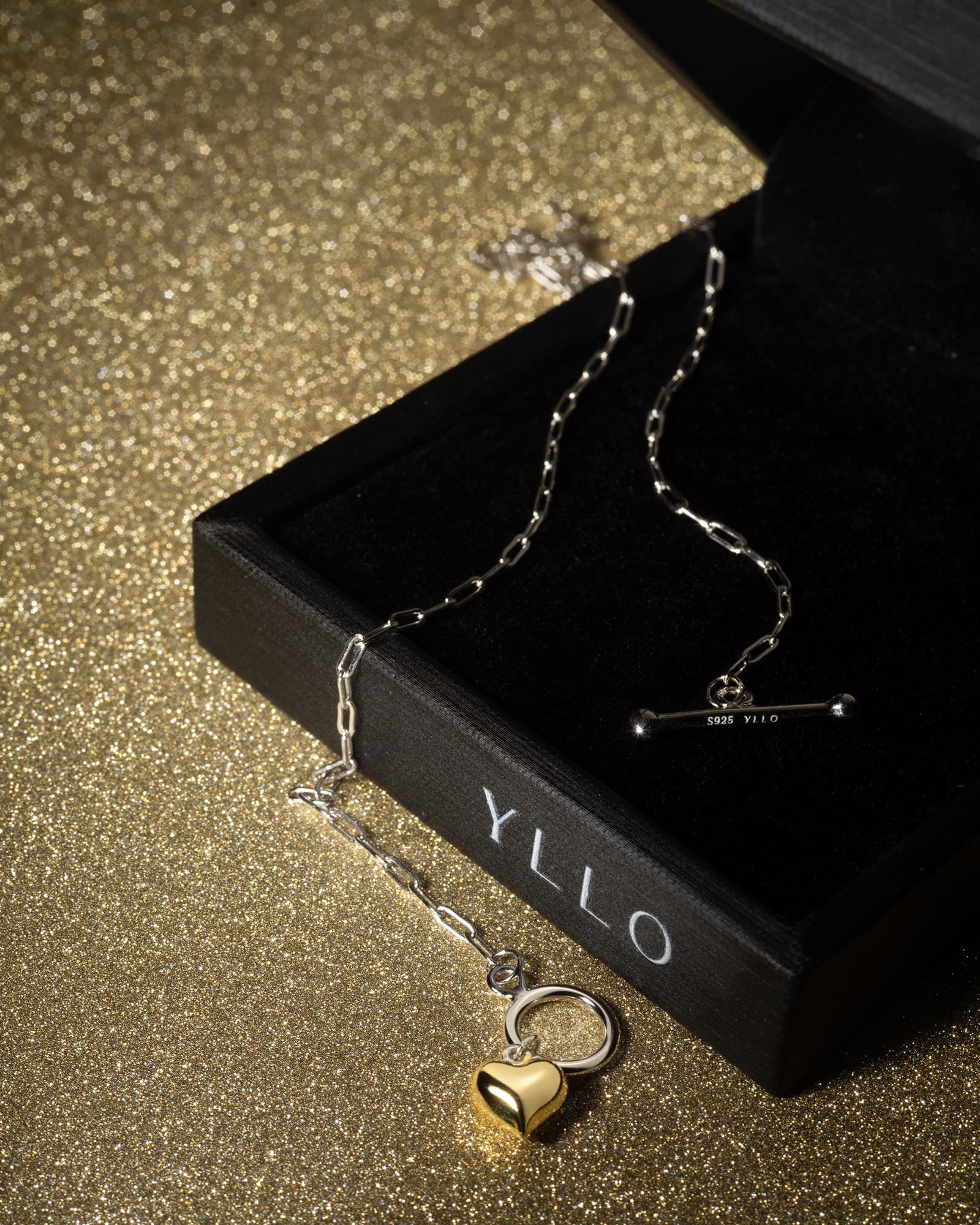 Lanț argint 925 cu inimă placată cu aur, care atrage privirile și ridică orice outfit la nivel de trend. Minimal, dar cu efect maxim.