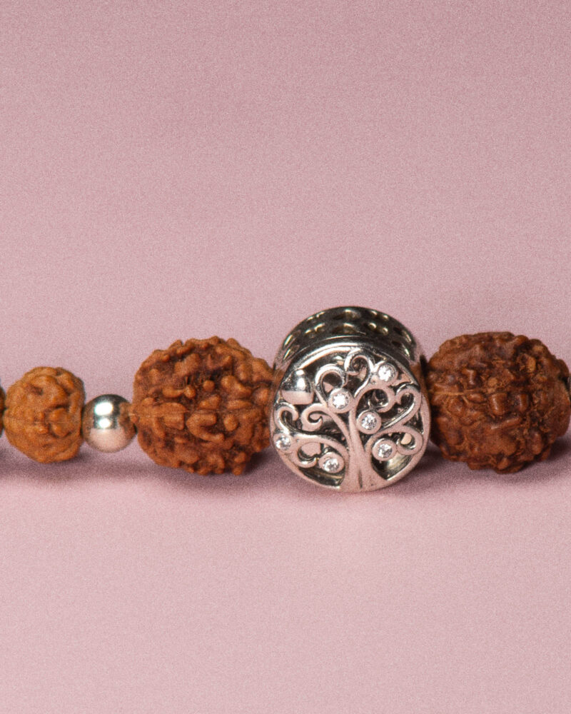 Material: Argint 925 placat cu rodiu și semințe de Rudraksha.