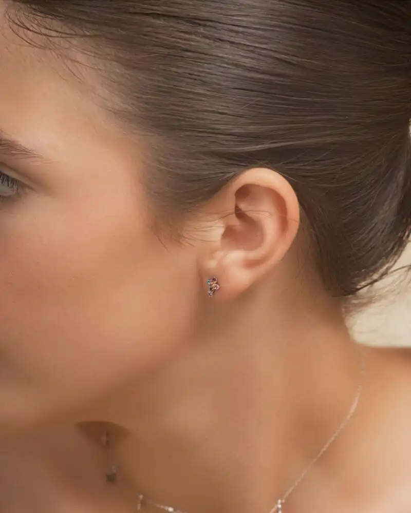 Small Cross sunt cerceii din argint 925 placat cu aur de 18K care îmbină forma iconică cu un strop de culoare: zirconii multicolore, perfect aliniate pentru un efect subtil, dar memorabil.