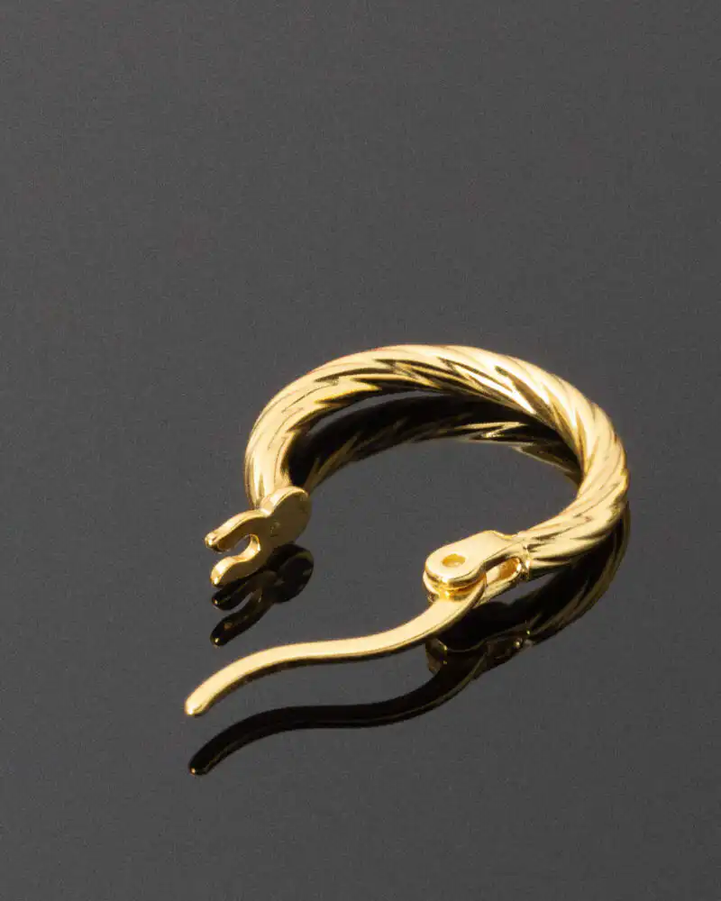 Realizați din argint 925 și placati cu aur de 18 K, acești cercei cu model răsucit îmbină frumusețea clasică a formei rotunde cu strălucirea caldă a aurului. Placarea cu aur ofera un aspect luxos și o protecție suplimentară împotriva coroziunii. Forma rotundă este versatilă, aducând distincție fiecărei ținute. Indiferent dacă îi porți la evenimente sau în rutina zilnică, acești cercei sunt un accent subtil care completează perfect orice stil vestimentar.