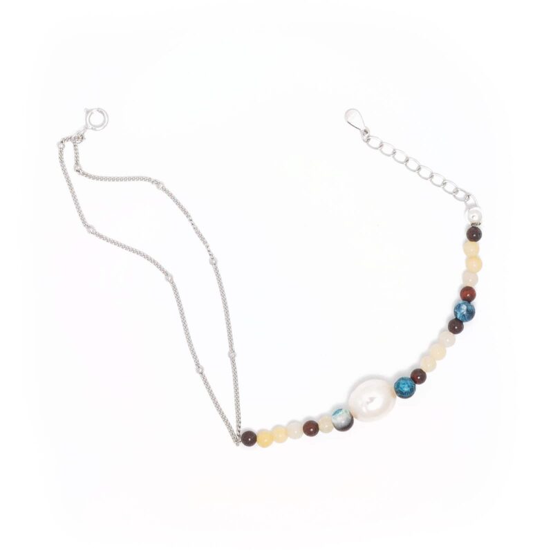 Brățara Story este o bijuterie exclusivă, creată special pentru Yllo, lucrată manual din argint 925 placat cu rodiu și înfrumusețată cu pietre prețioase naturale. Agatul delicat și perla naturală de cultură se armonizează perfect, oferind un echilibru subtil între eleganță și semnificație. Fiecare detaliu al acestei brățări este realizat cu atenție la detalii, reflectând măiestria celor care au creat-o, fiind ideală pentru cei care își doresc o bijuterie rafinată și plină de energie pozitivă.